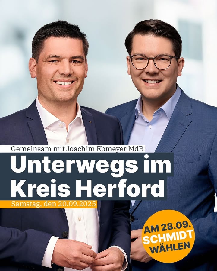 🚗 Unterwegs im Kreis Herford 🏘️Morgen, Samstag, der 20. September, steht ein volles Programm auf dem Plan.➡️ 08:00?9:00 Uhr 👉 EDEKA Wehrmann➡️ 09:15?10:00 Uhr 👉 Combi, Löhne-Ort➡️ 10:15?11:00 Uhr 👉 Edeka Wehrmann, Eilshausen➡️ 11:15?13:15 Uhr 👉 Weltkindertag Bünde➡️ 13:30?17:00 Uhr 👉 Weltkindertag Herford? Wir freuen uns auf euch!#kreisherford #kommunalwahl2025