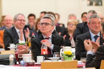 Den Deutschen gehe es so gut wie lange nicht mehr – dennoch gebe es zunehmend Ängste und Sorgen, die sich an der Innenpolitik festmachten: Diesen Hinweis Ostermanns greift der Minister in seiner 45-minütigen Rede auf: »Deutschland ist eines der sichersten Länder der Welt. Trotzdem
